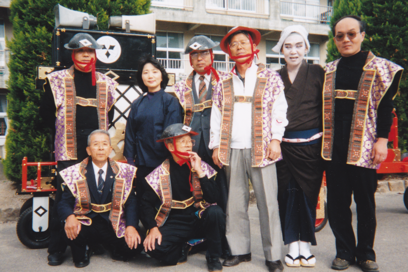 この年は、午前中は益田市市制四十周年記念行事に招待され、益田駅前で行進・演技致しました。午後からは平年の通り益田七尾まつりにて行進・演技しました。