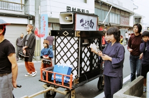 平成20年11月3日、子ども奴の第20回目の出陣です。 益田小学校児童約130名が、益田七尾まつりの先導を務めました。子ども奴名物のかわら版屋がこの年は親子?3名で繰り出し、沿道にて子ども奴や大小行司の宣伝をして大いに盛り上げて頂きました。