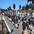 平成27年11月3日、子ども奴道中は26回目の出陣をしました。益田小学校児童約100名が、正午前に小学校前の折戸に集結、原益田小学校校長先生の激励の挨拶を受け、昨年より変わったコースで、折戸交差点から本町通りを通り、JAいわみ前交差点を左折し七尾城通り暁音寺で折り返し、七尾城通りを三宅御土居まで行き、そこでまた折り返し、JA前交差点を右折し、本町通りから幸町通りを経て益田児童館にかえるコースを演技・行進しました。沿道では多くの観客が見守り、子どもたちの勇壮な演技に応え、多くの賞賛を頂きました。 大変素晴らしい演技でした。ご声援ありがとうございました。