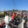 平成30年11月3日晴れ、子ども奴道中は29回目の出陣をしました。益田小学校児童約100名が、正午前に小学校横の折戸交差点に集結、増野益田小学校校長先生の激励の挨拶を受け、折戸交差点から本町通りを通り、JAいわみ前交差点を右折し七尾城通りを三宅御土居まで行き、そこでまた折り返し、JA前交差点を右折し、メイン会場の本町通りから幸町通りを経て益田児童館にかえるコースで多くの演技をし、行進しました。沿道では多くの観客が見守り、子どもたちの勇壮な演技に応え、多くの賞賛を頂きました。 大変素晴らしい演技でした。ご声援ありがとうございました。